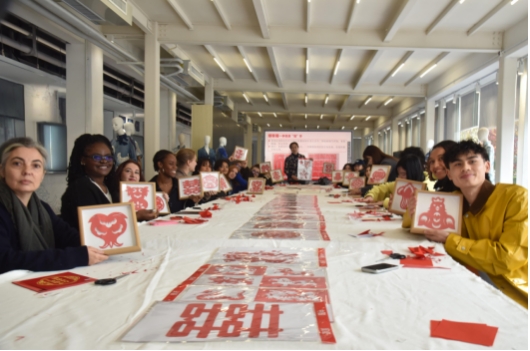 活动开篇,学校为法国师生举行庄重欢迎仪式。校党委委员、党委组织统战部部长常立代表学校,向代表团赠送国际时尚学院教师亲笔书写卷轴。在交流实践环节,法国代表团参观了学校数字化全链路时尚设计展示区,全方位感知中国职业教育在数字化转型中的创新成果。通过非遗剪纸体验,法国学生亲手创作兼具东方美学与现代创意的作品。通过丝绸扎染体验活动,让丝绸文化在跨文化交流中焕发新活力。