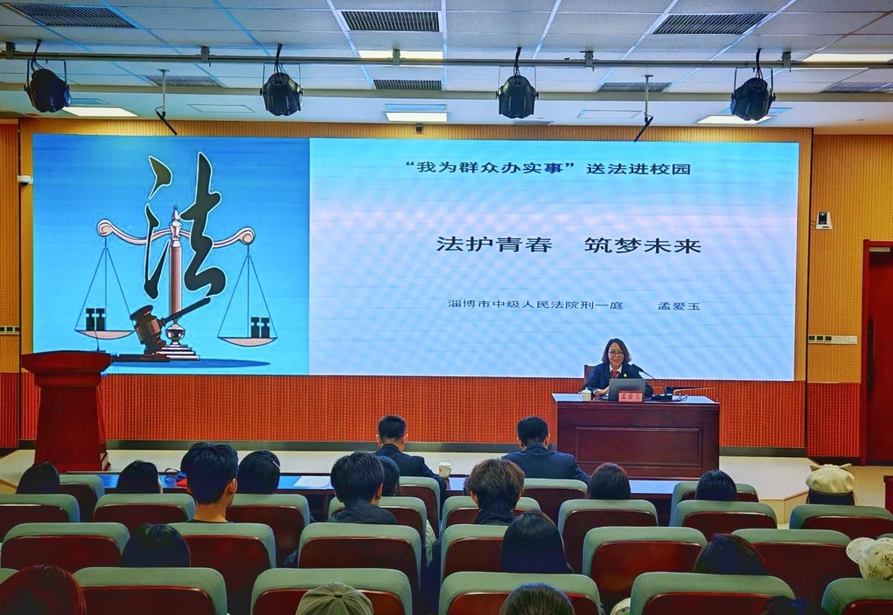 本站讯(通讯员 姜兴国 魏鹂泽)为深入贯彻落实学校“六结合”法治教育模式,增强青年学生的法治观念和自我保护意识,共同营造平安和谐的校园环境,10月28日,学校邀请淄博市中级人民法院刑一庭资深法官孟爱玉开展“法护青春·筑梦未来”预防青少年犯罪专题讲座。学校党委副书记唐勋参加活动。