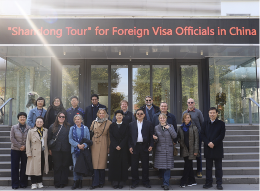 本站讯(通讯员 李永鑫)10月22日,多国驻华签证官代表团在省外办及市区领导陪同下到访山东轻工职业学院。在学校党委书记范桂君等陪同下,代表团先后考察了国际时尚学院数字化全链路实训中心与非遗学院青悠坊草木染工坊,沉浸式感受学校“丝绸文化为底色,时尚创意为特色”的校园文化。